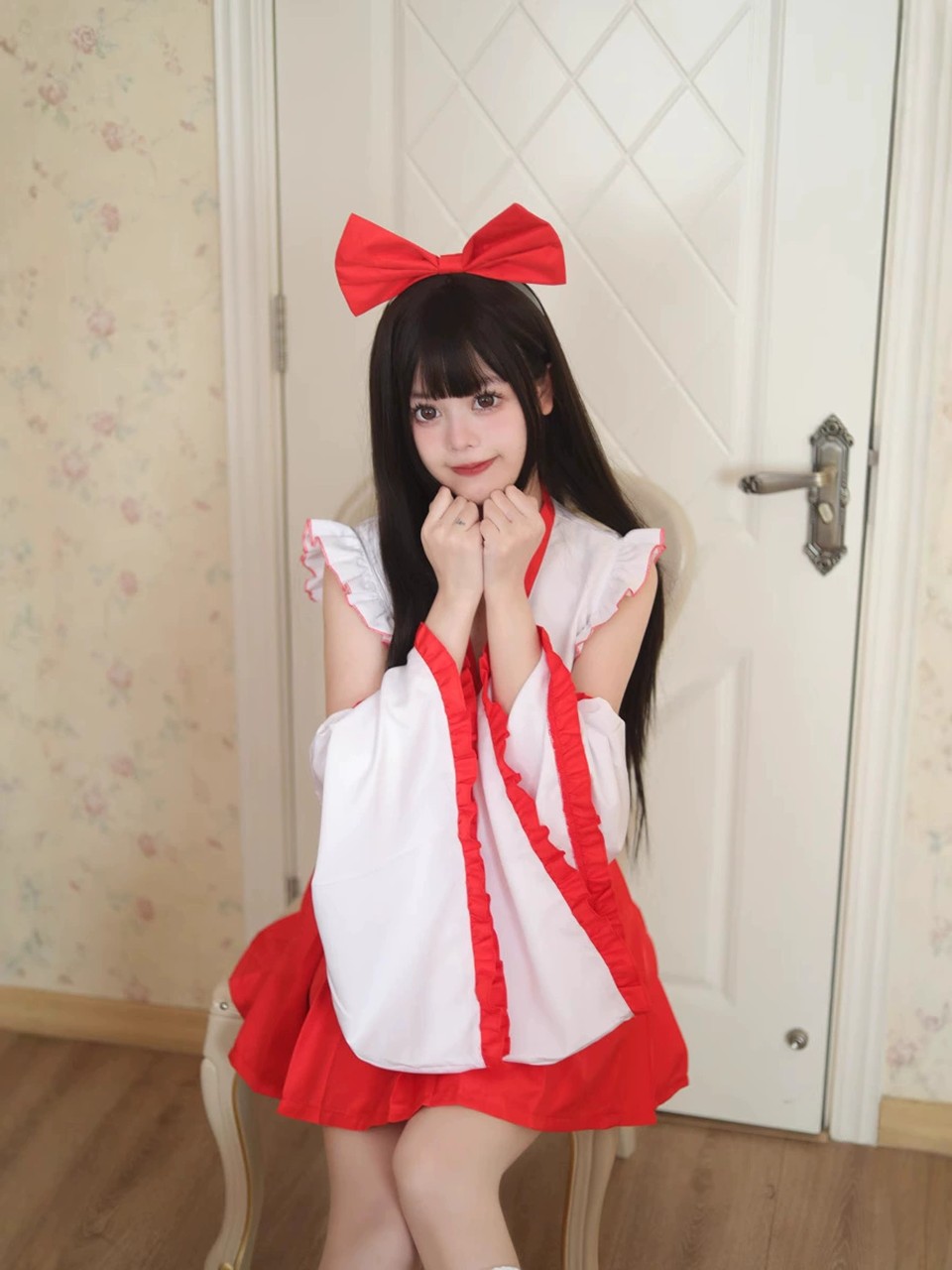 巫女風 メイド服 大きいサイズ コスプレ 仮装 コスチューム フリル リボン エプロン 制服 ウェイトレス 女の子 可愛い 萌え 正統衣装 原宿 お嬢様 文化祭 ハロウィン [g653]