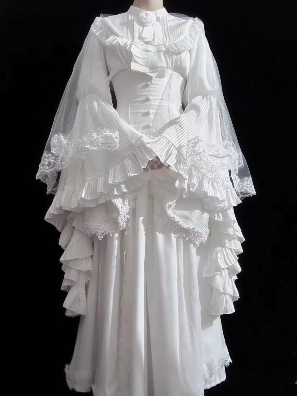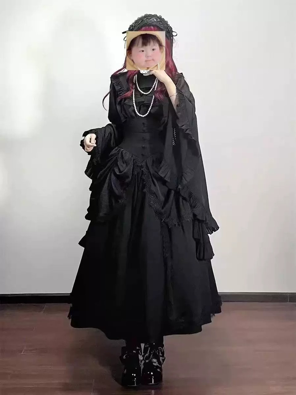 仮装舞踏会 ロリータ ハイウエストスカート lolita 上着 ダーク系ゴシック風 ロング ジャンスカ lolita cla 仮装舞踏会 ハロウィン 黒 白 ワンピース ロリータ フィッシュテール リボン レディース ゴスロリ 姫系 プリンセス風 コスプレコーディネート かわいい 仮装