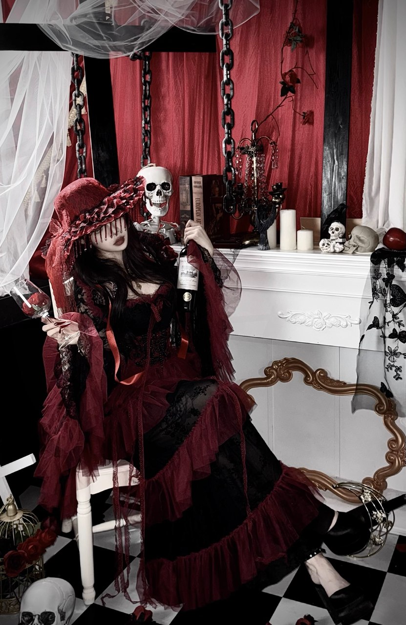 深紅のゴシックドレスコートドレス、オリジナルドレス、ふくらみのあるドレス、、ビーズドレス、ダークドレスコスプレ 衣装 通販 オーダーメイド [g762]