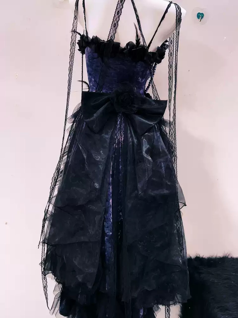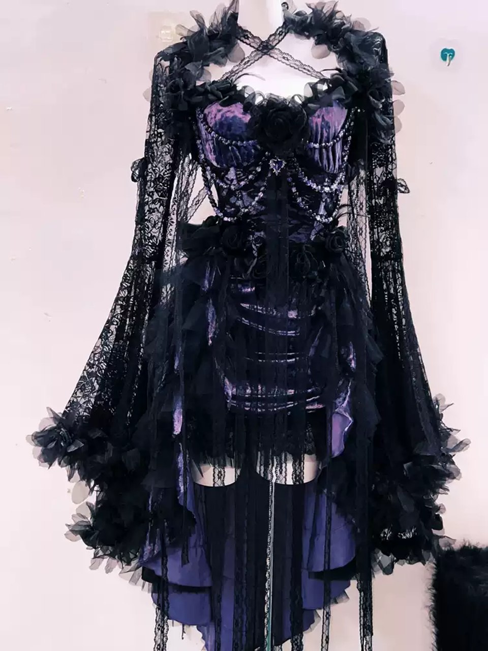 オリジナルの紫色のロングドレス、エレガントで洗練された、中世ゴシックスタイルの高級スリミングドレスコスプレ 衣装 通販 オーダーメイド