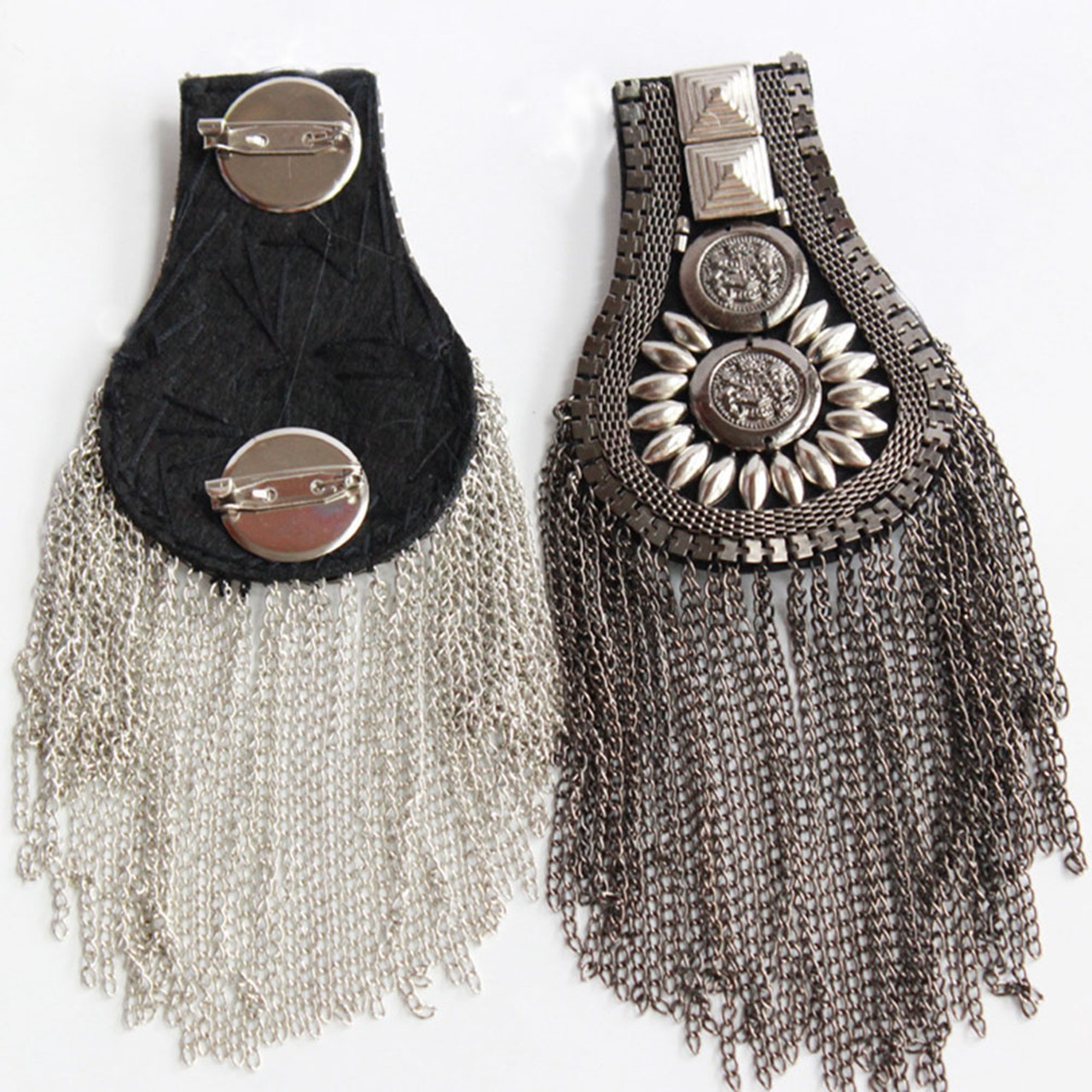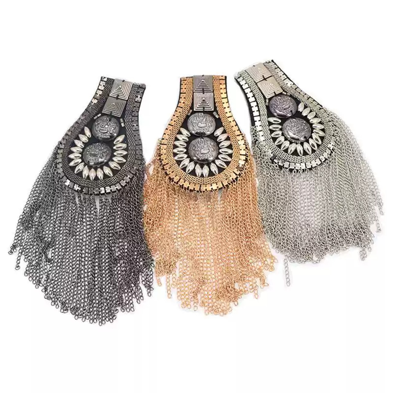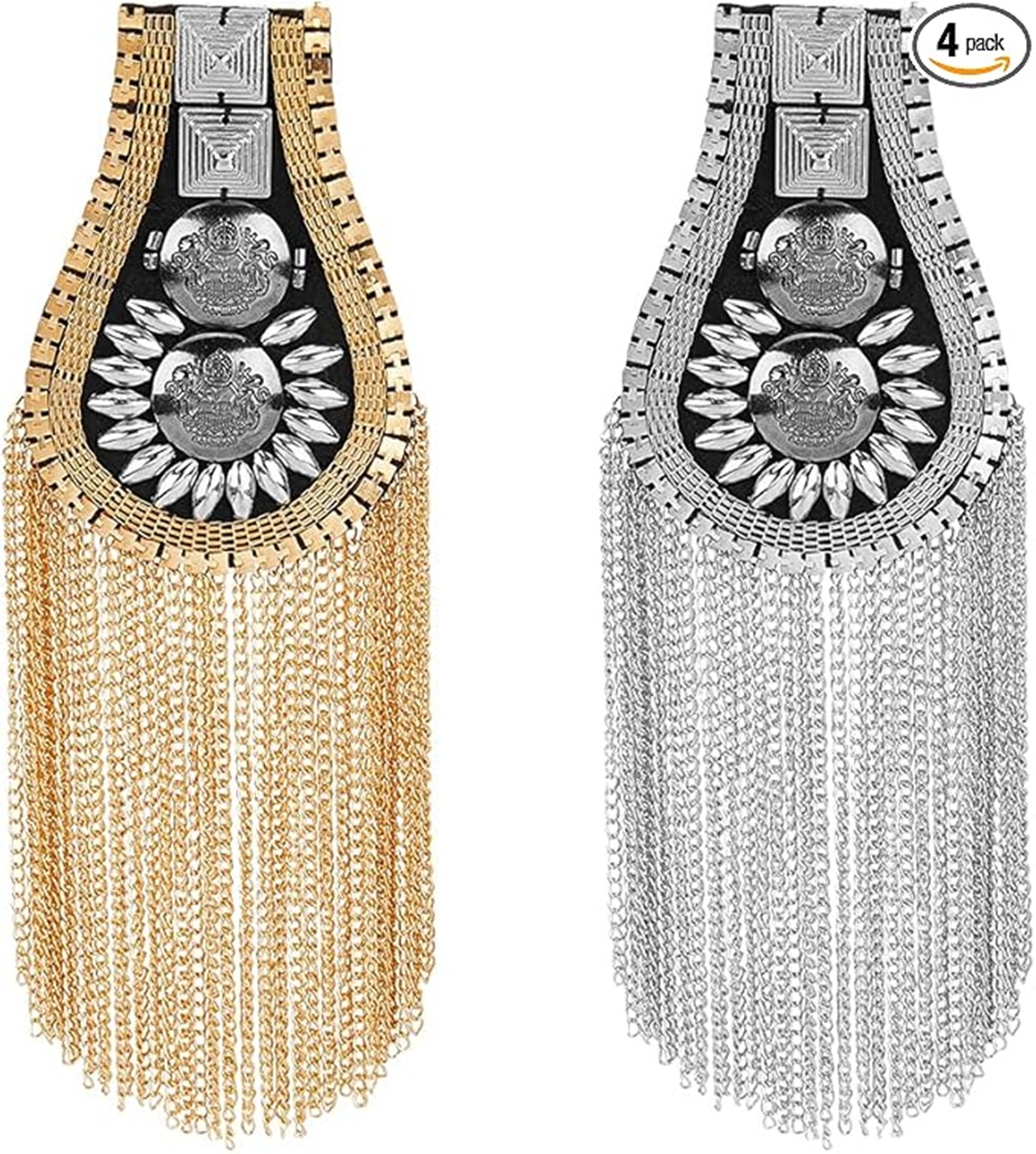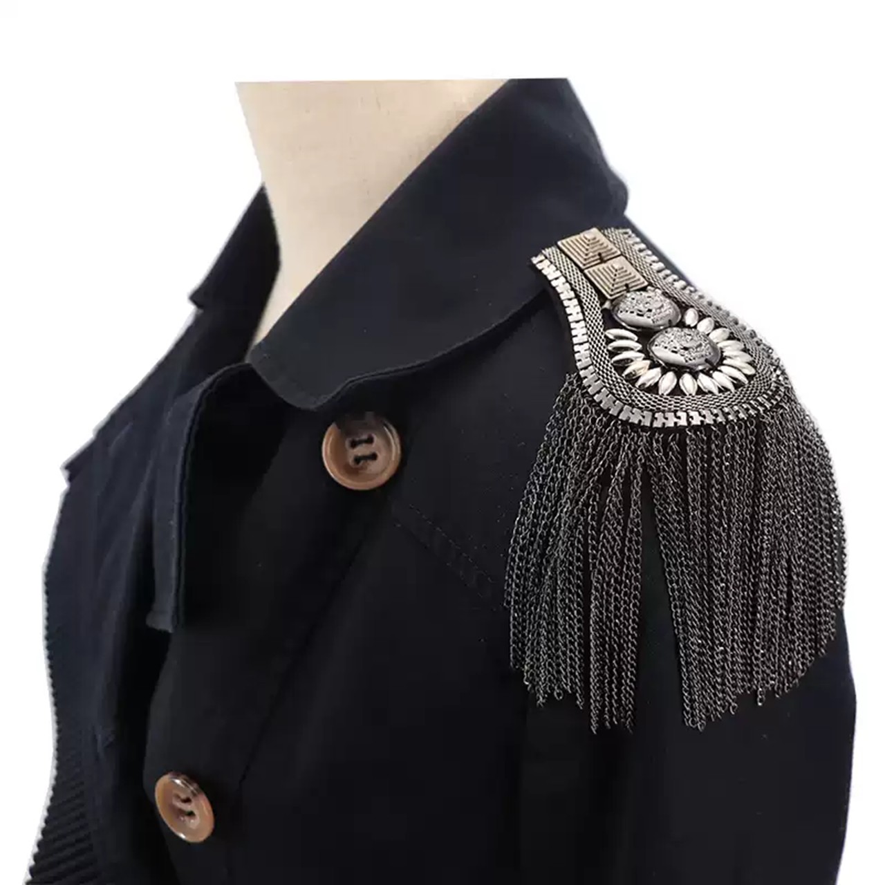 ファッションタッセル肩章 2色 メタルパンクショルダーバッジ取り外し 可能なゴールデン肩章肩の飾り パフォーマンスに使用でき ジャケット用ピンで固定メタルパンクフリンジ [g808]